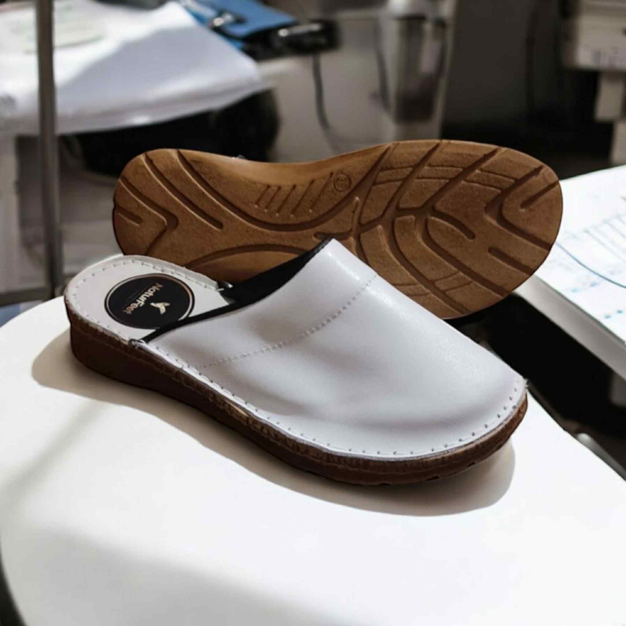 Poznaj damskie klapki Naturfeet, stworzone z myślą o kobietach ceniących wygodę i naturalne materiały. Wykonane w całości z wysokiej jakości skóry naturalnej, zapewniają wyjątkowy komfort noszenia oraz trwałość na lata. Perforowana cholewka wspomaga oddychalność, a miękka, profilowana wkładka dopasowuje się do kształtu stopy. Doskonale sprawdzą się zarówno w domu, jak i na zewnątrz.