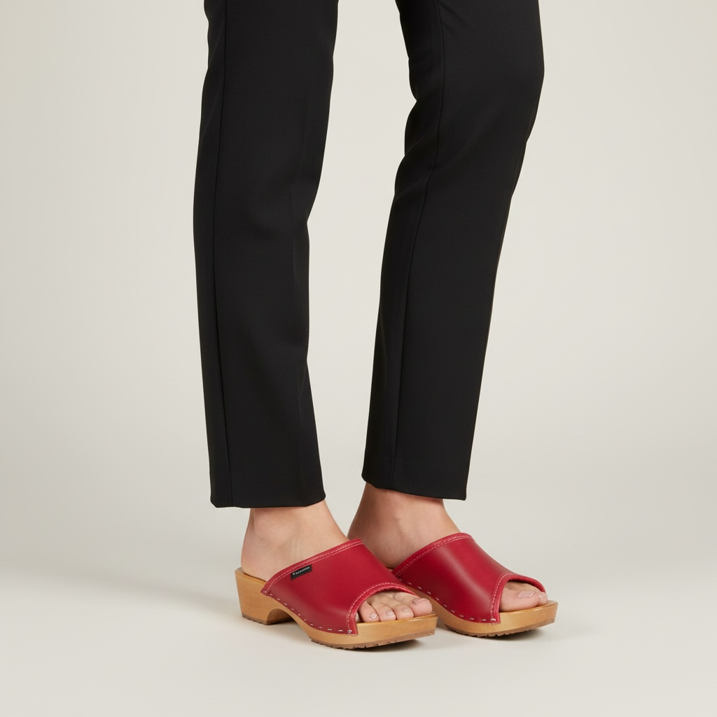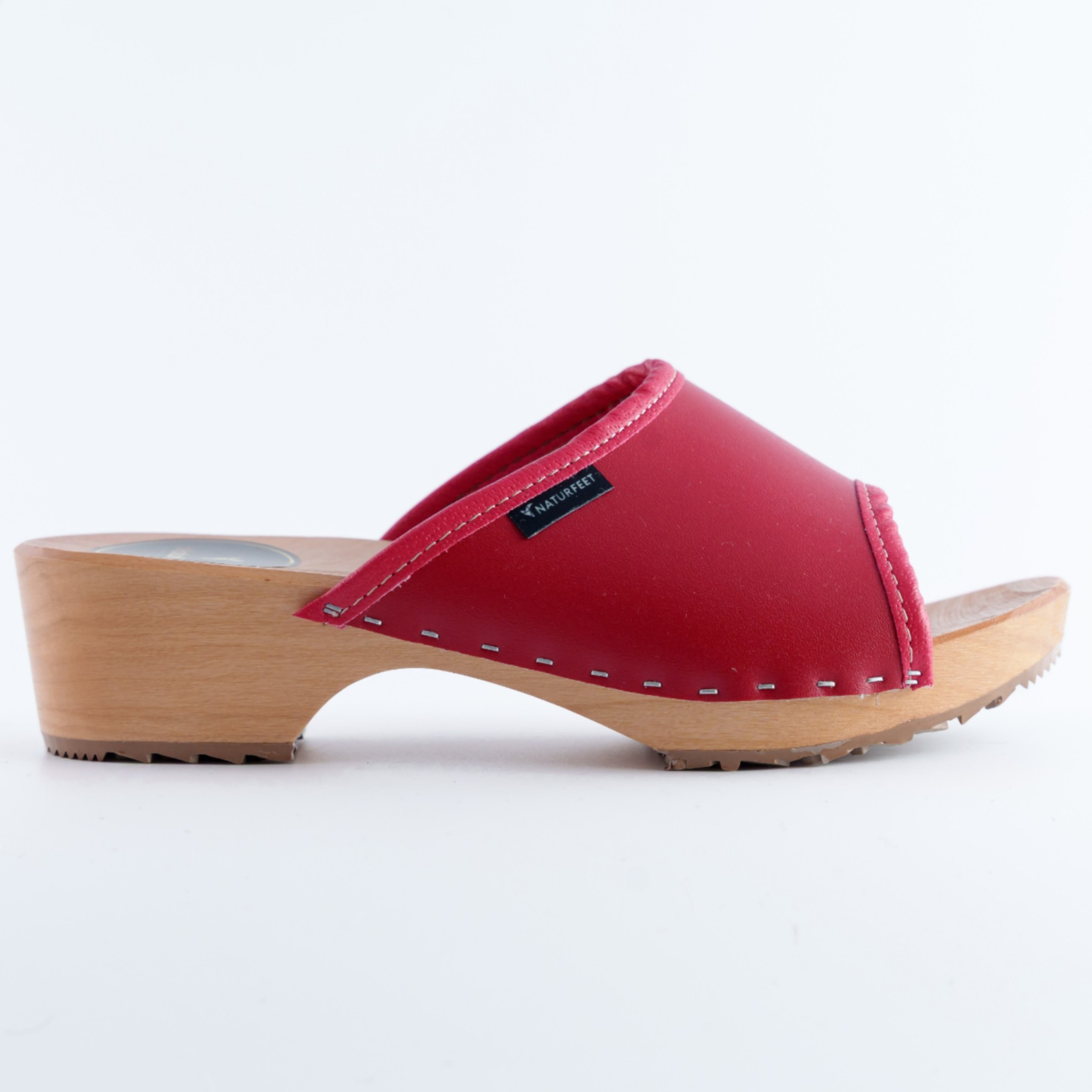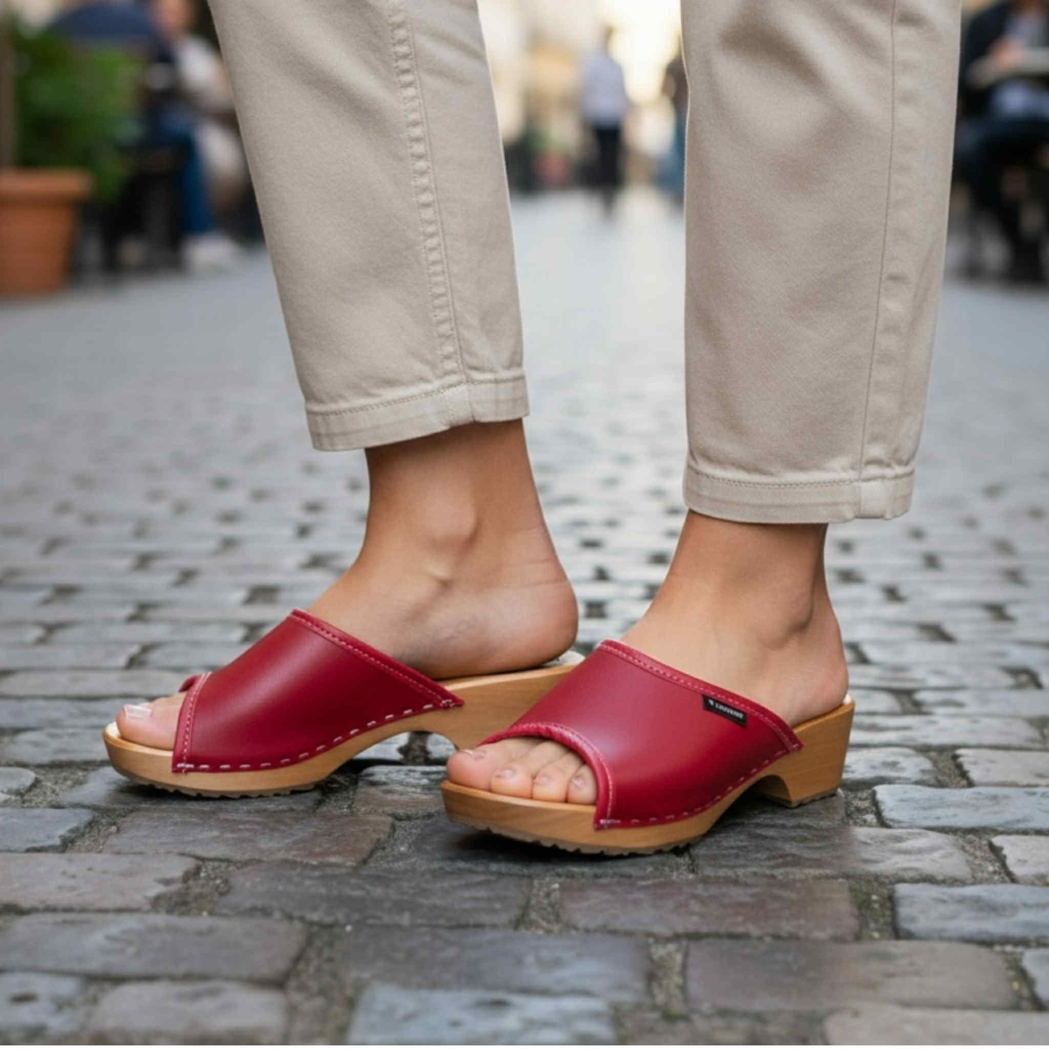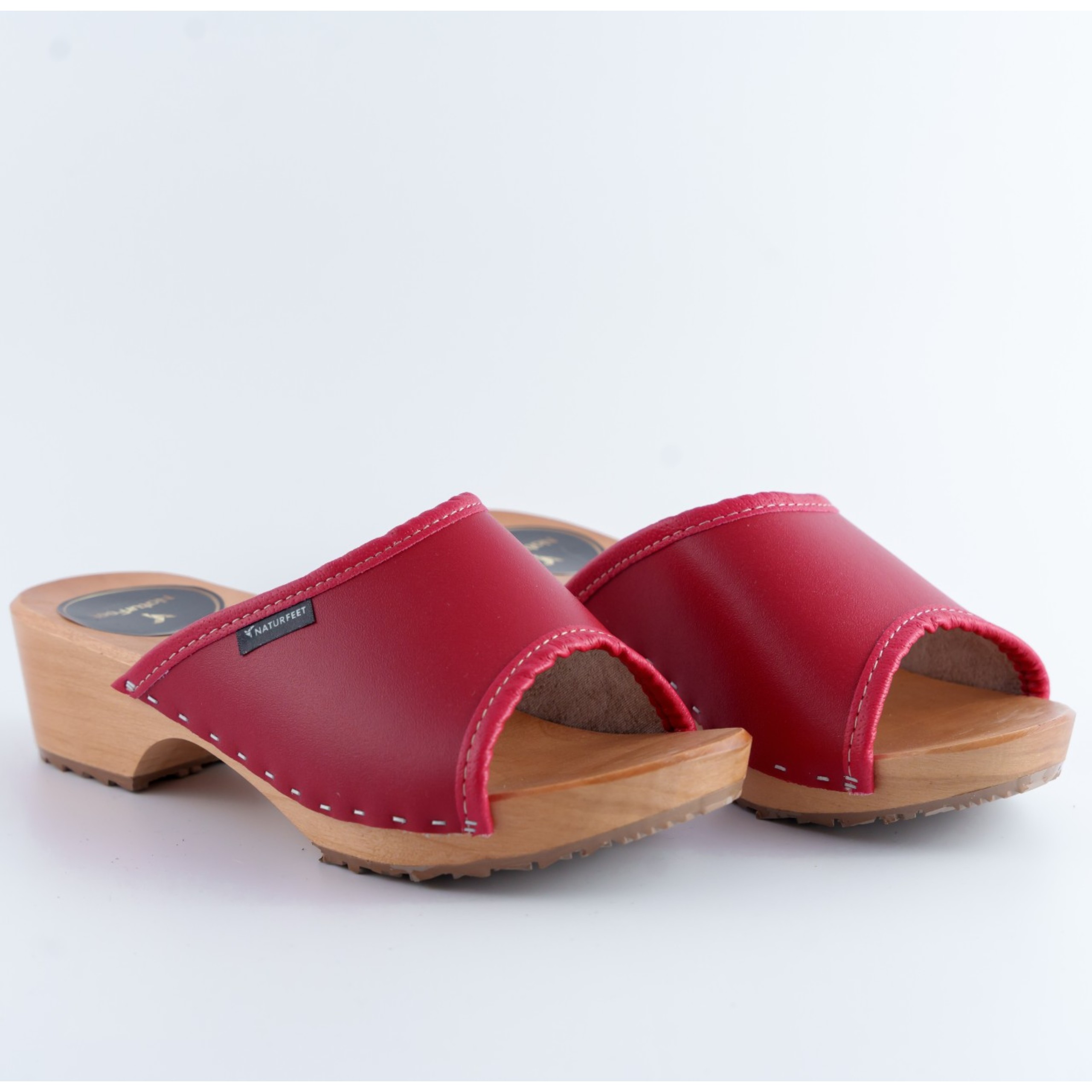 Postaw na naturalny komfort i ponadczasowy styl z damskimi drewniakami Naturfeet. Te eleganckie klapki zostały wykonane z wysokiej jakości naturalnej skóry w klasycznym czerwonym kolorze. Solidna, profilowana podeszwa z drewna zapewnia odpowiednie podparcie dla stóp, a antypoślizgowy bieżnik gwarantuje stabilność na różnych nawierzchniach. Idealne zarówno do codziennego użytku, jak i do pracy – szczególnie w branży medycznej czy kosmetycznej.