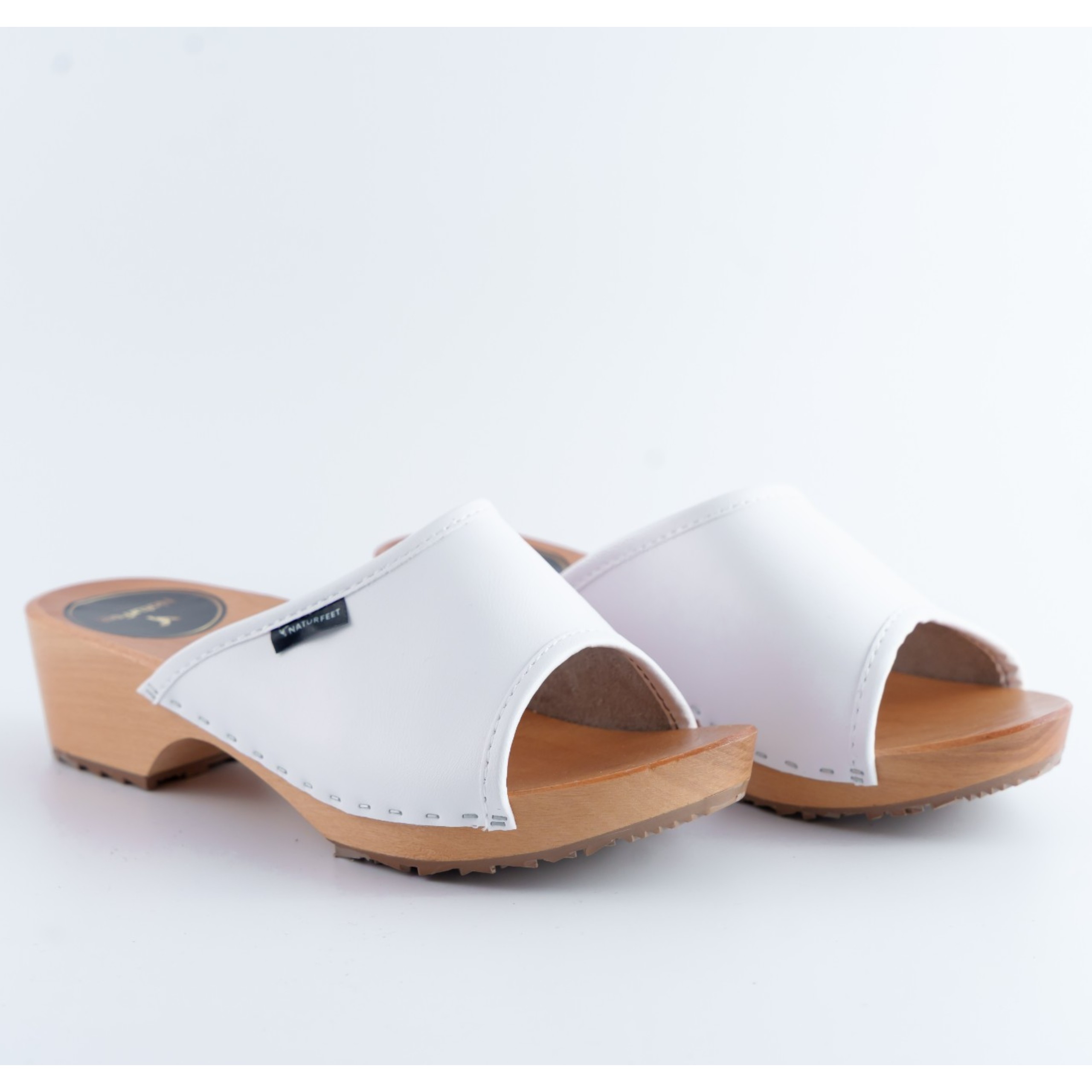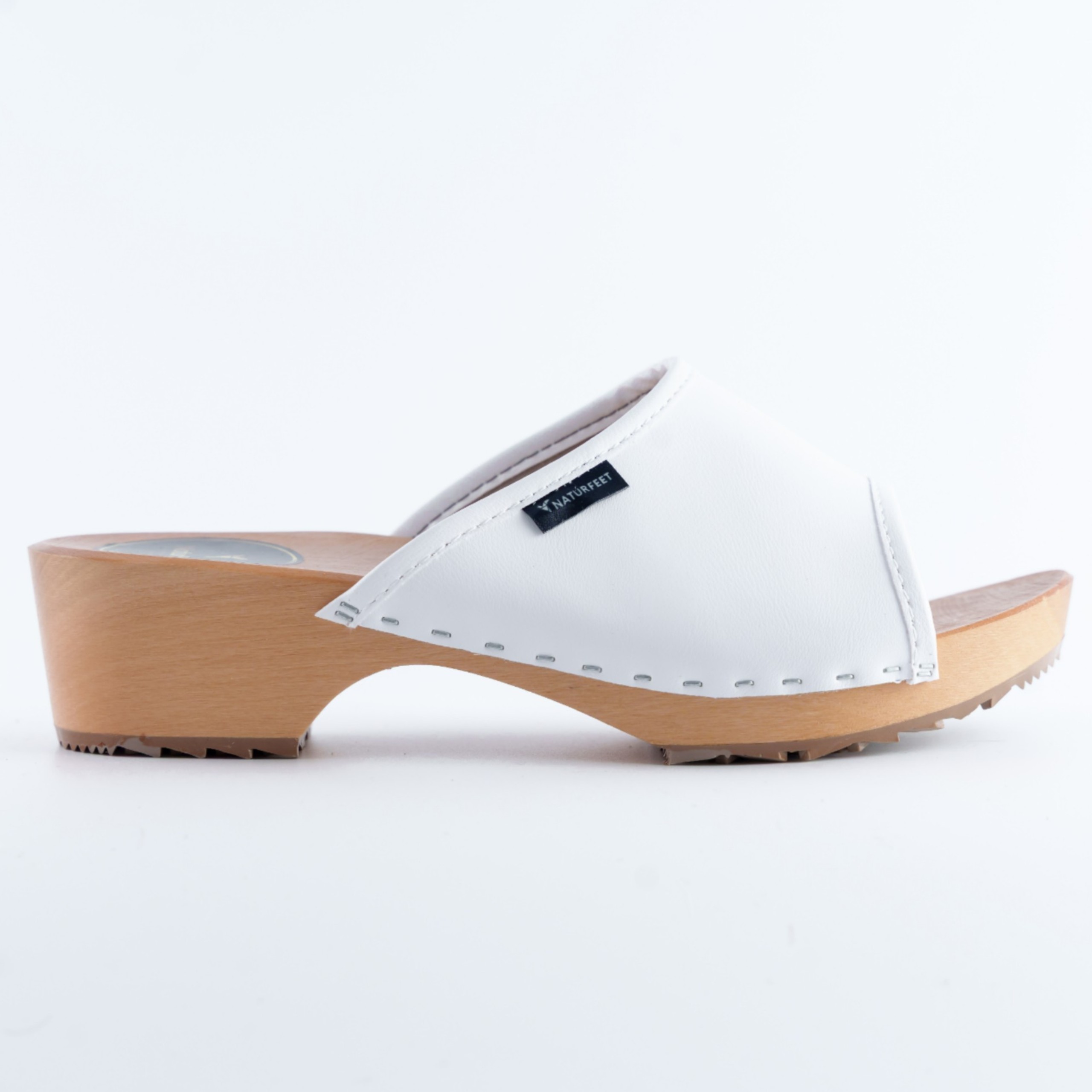 Postaw na naturalny komfort i ponadczasowy styl z damskimi drewniakami Naturfeet. Te eleganckie klapki zostały wykonane z wysokiej jakości naturalnej skóry w klasycznym białym kolorze. Solidna, profilowana podeszwa z drewna zapewnia odpowiednie podparcie dla stóp, a antypoślizgowy bieżnik gwarantuje stabilność na różnych nawierzchniach. Idealne zarówno do codziennego użytku, jak i do pracy – szczególnie w branży medycznej czy kosmetycznej.
