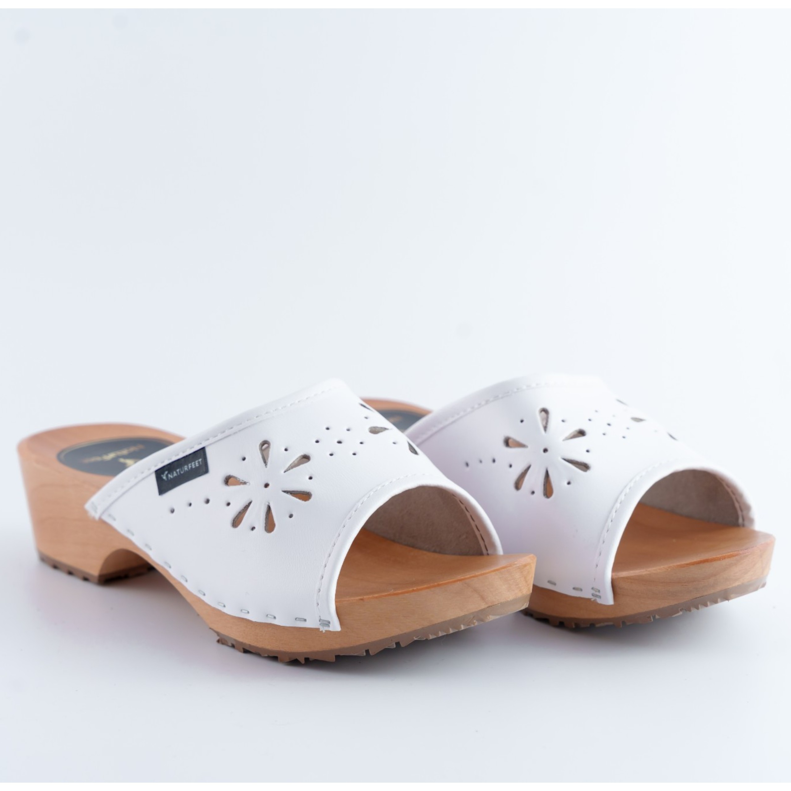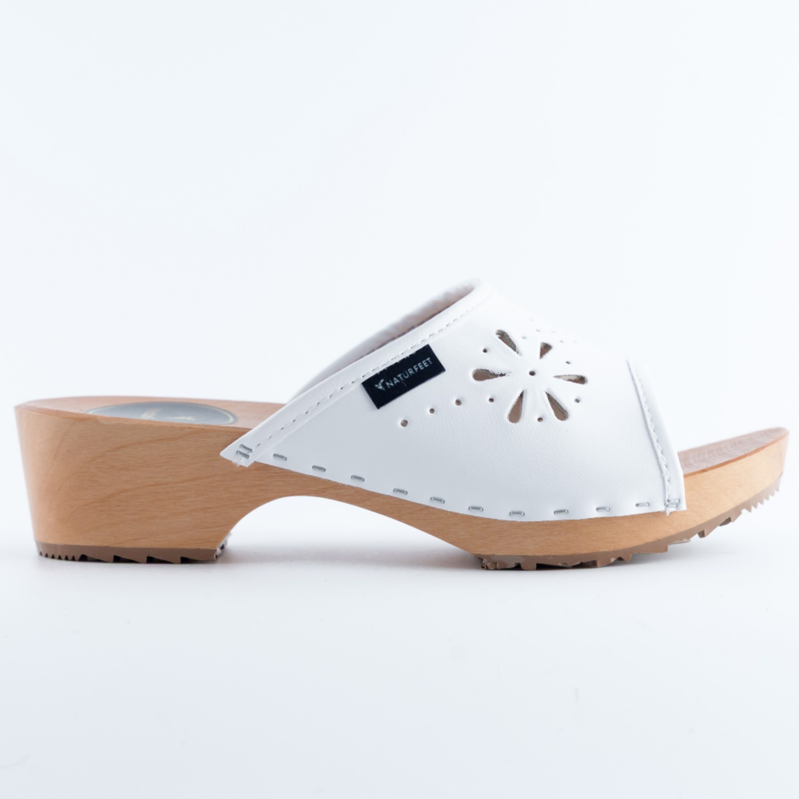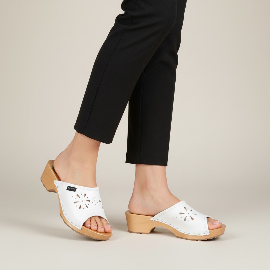 Odkryj komfort i styl z damskimi drewniakami marki Naturfeet. Wykonane z wysokiej jakości naturalnej skóry w eleganckim białym kolorze, te klapki łączą klasyczny wygląd z wygodą na co dzień. Ażurowy wzór dodaje lekkości i kobiecego uroku, a profilowana, drewniana podeszwa z antypoślizgowym spodem zapewnia stabilność i wsparcie stopy.