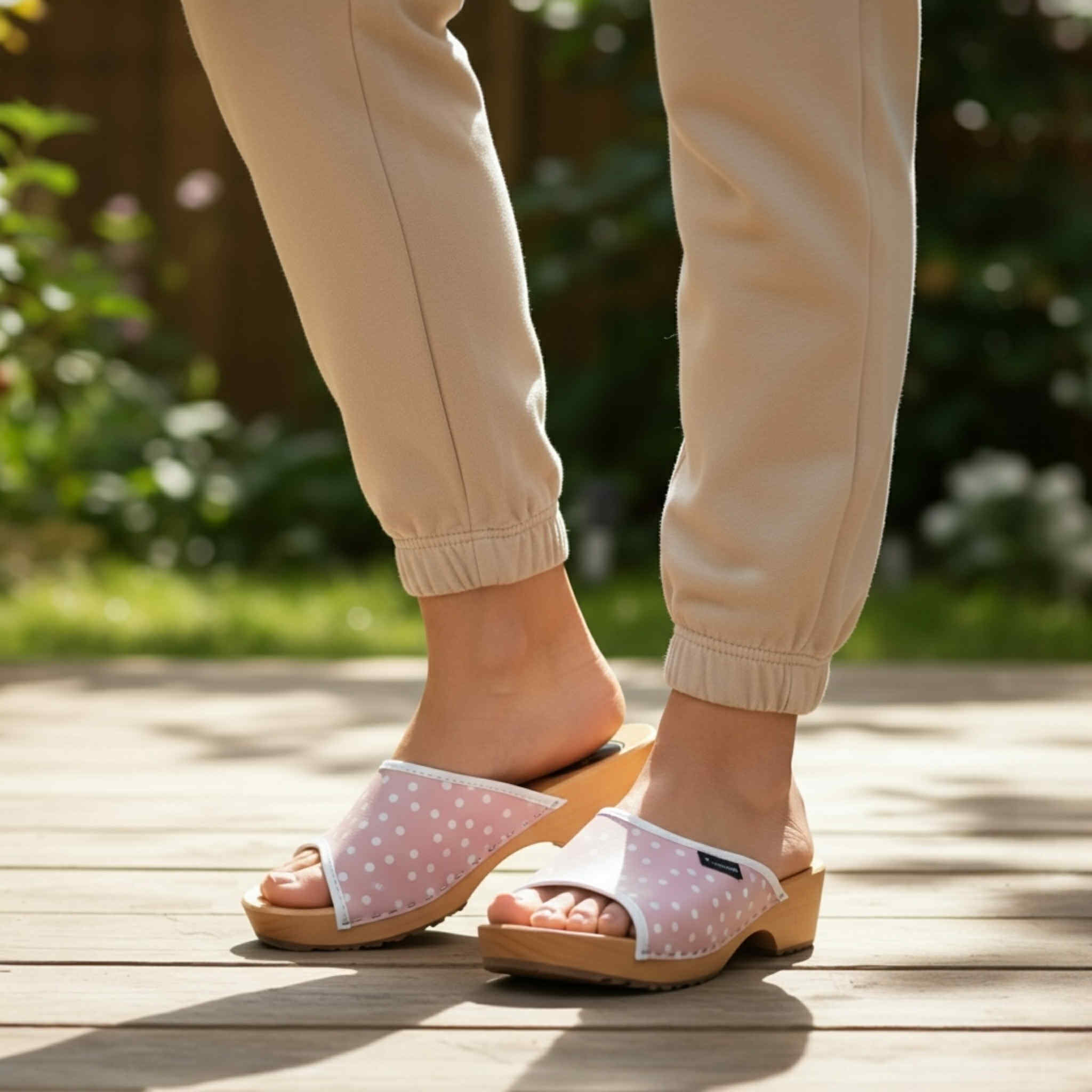 Solidna drewniana podeszwa została zaprojektowana z myślą o codziennym komforcie – idealne zarówno do domu, jak i na zewnątrz. Antypoślizgowa podeszwa zapewnia bezpieczeństwo na różnych powierzchniach. Każda para to połączenie tradycji z nowoczesnym designem.