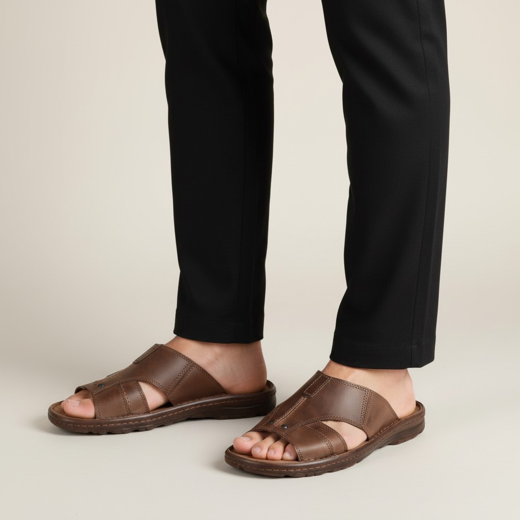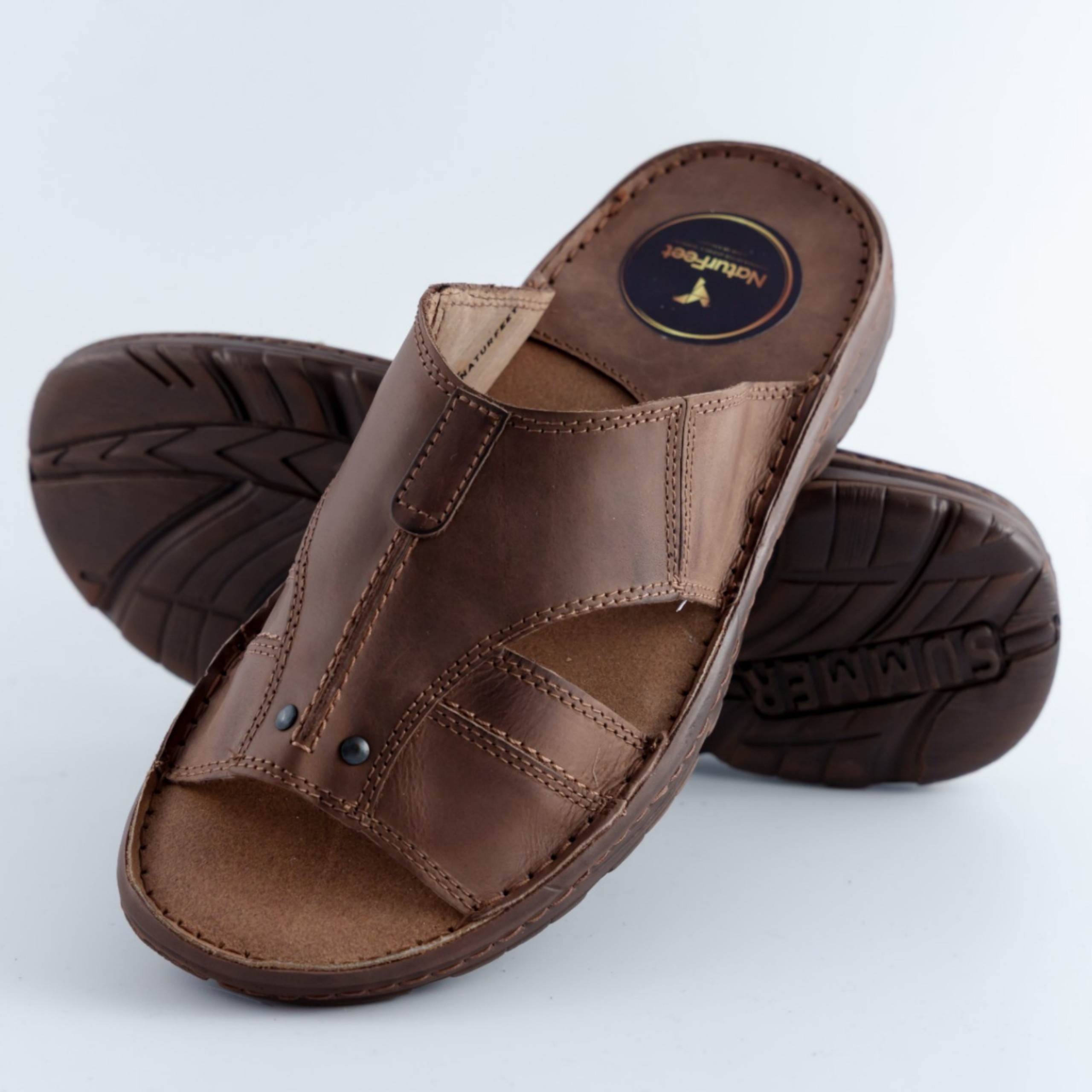 Męskie klapki Naturfeet KMO1DBR to ciemnobrązowy model z naturalnej skóry, przygotowany z myślą o wygodnym użytkowaniu latem. Wsuwany fason ułatwia szybkie zakładanie, a podeszwa SUMMER z antypoślizgowym spodem zapewnia stabilność podczas codziennego chodzenia. To praktyczne obuwie na spacer, urlop i zwykłe wyjścia w cieplejsze dni.