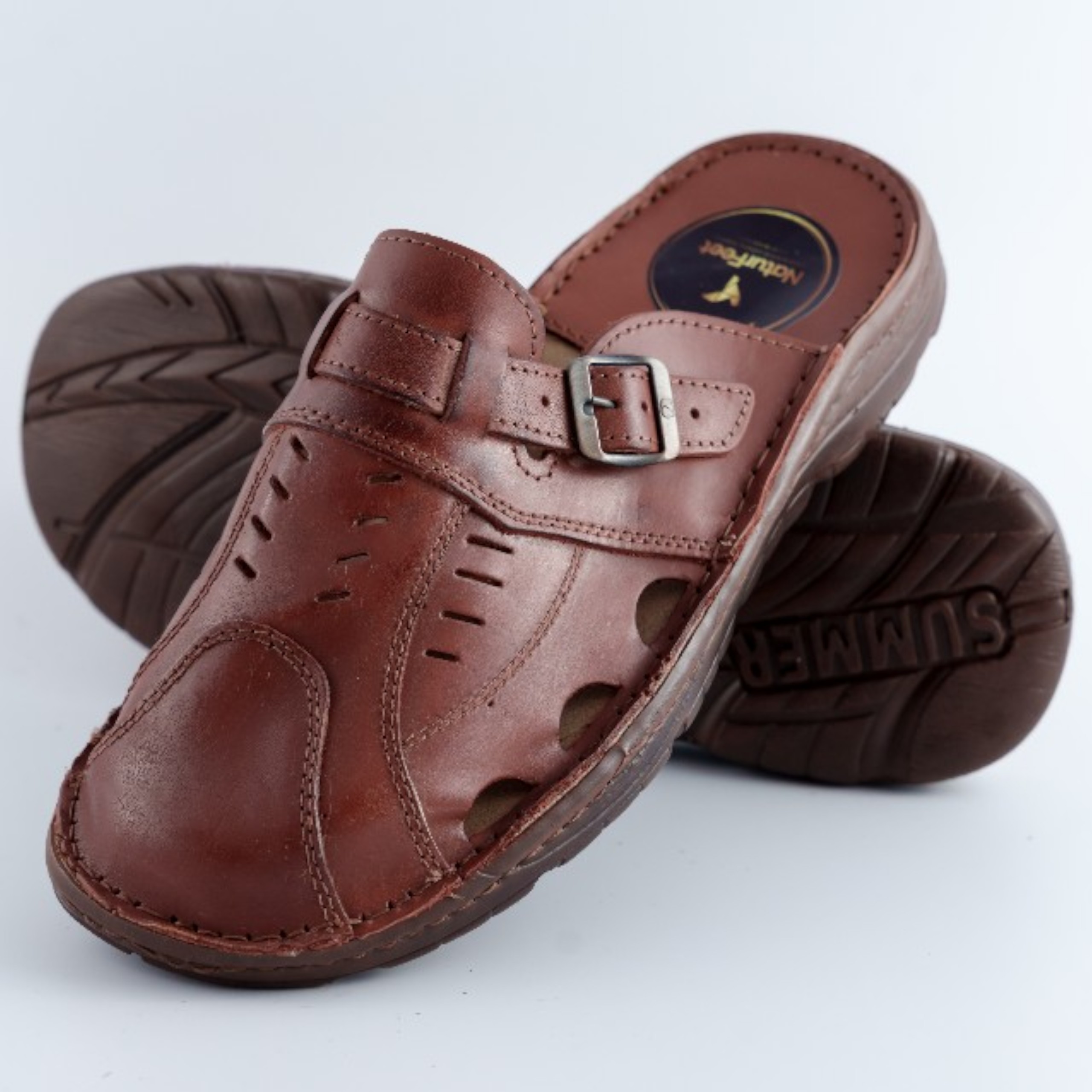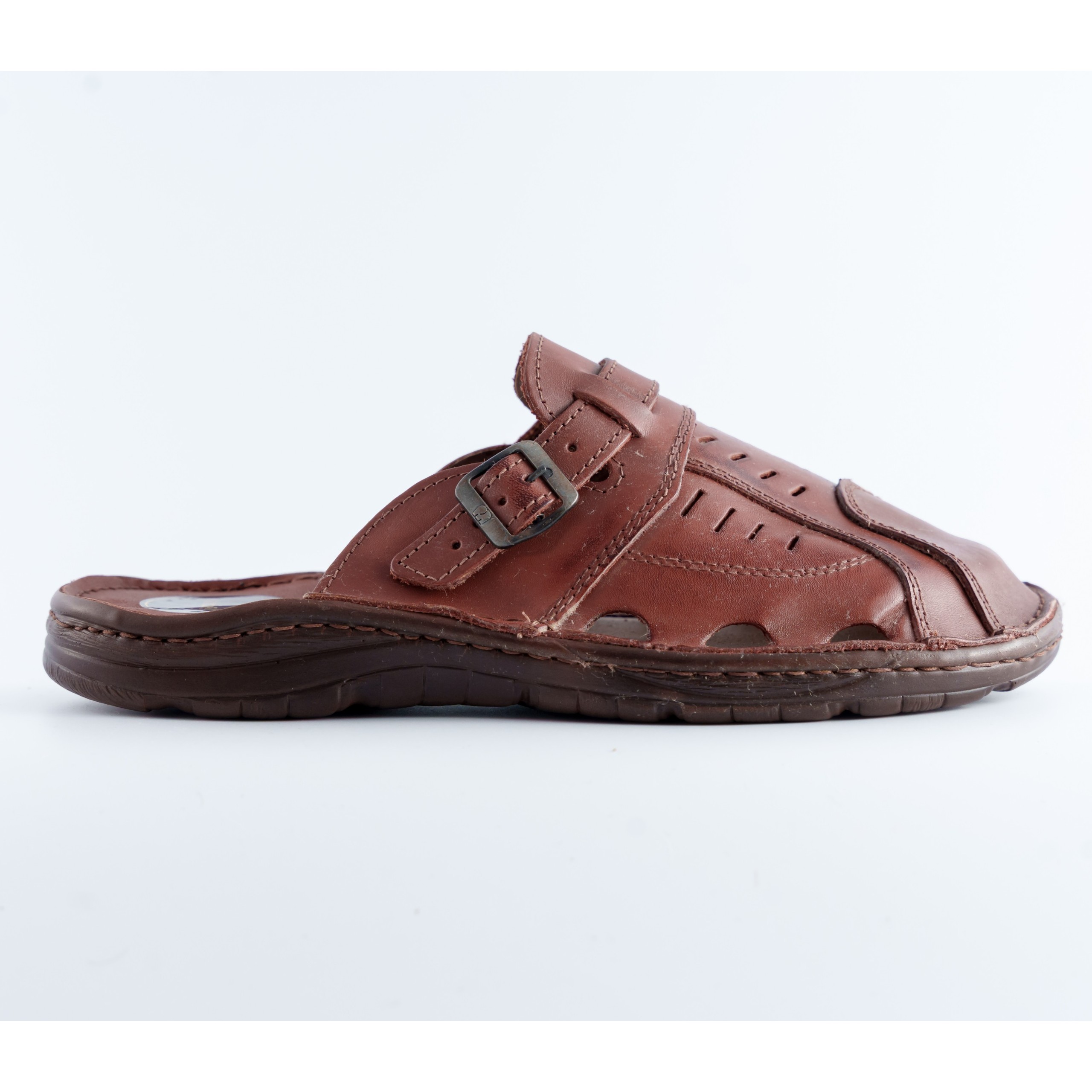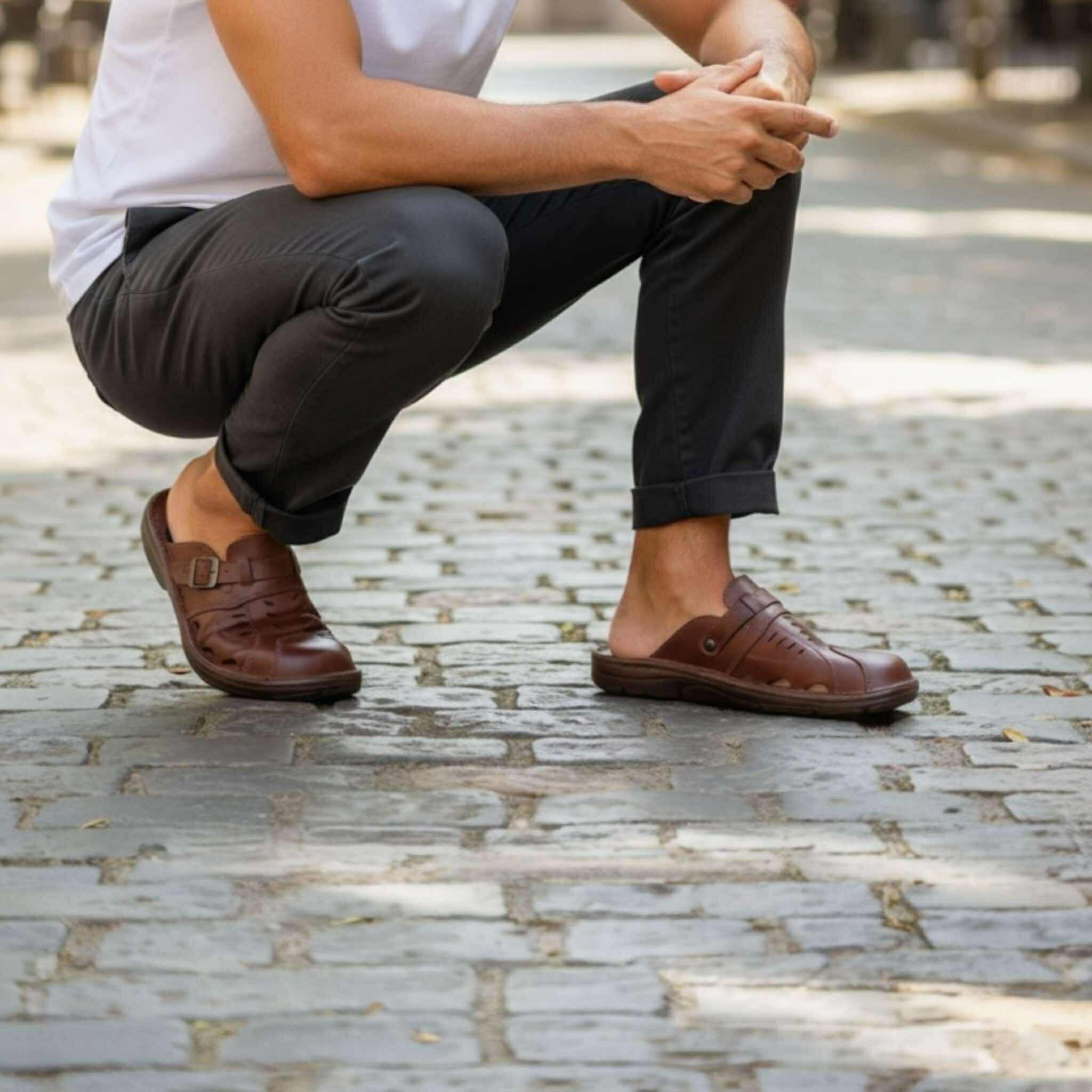 Stylowe i wygodne klapki męskie wykonane z wysokiej jakości skóry naturalnej. Klasyczny, brązowy kolor oraz solidne wykonanie sprawiają, że są idealnym wyborem na codzienne użytkowanie, zarówno w domu, jak i na zewnątrz. Regulowane zapięcie na klamrę pozwala dopasować but do stopy, zapewniając komfort noszenia. Antypoślizgowa, elastyczna podeszwa zapewnia stabilność i bezpieczeństwo na różnych nawierzchniach. Idealne połączenie elegancji i funkcjonalności dla każdego mężczyzny ceniącego wygodę i trwałość.