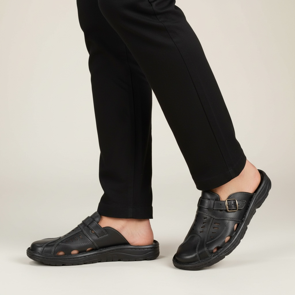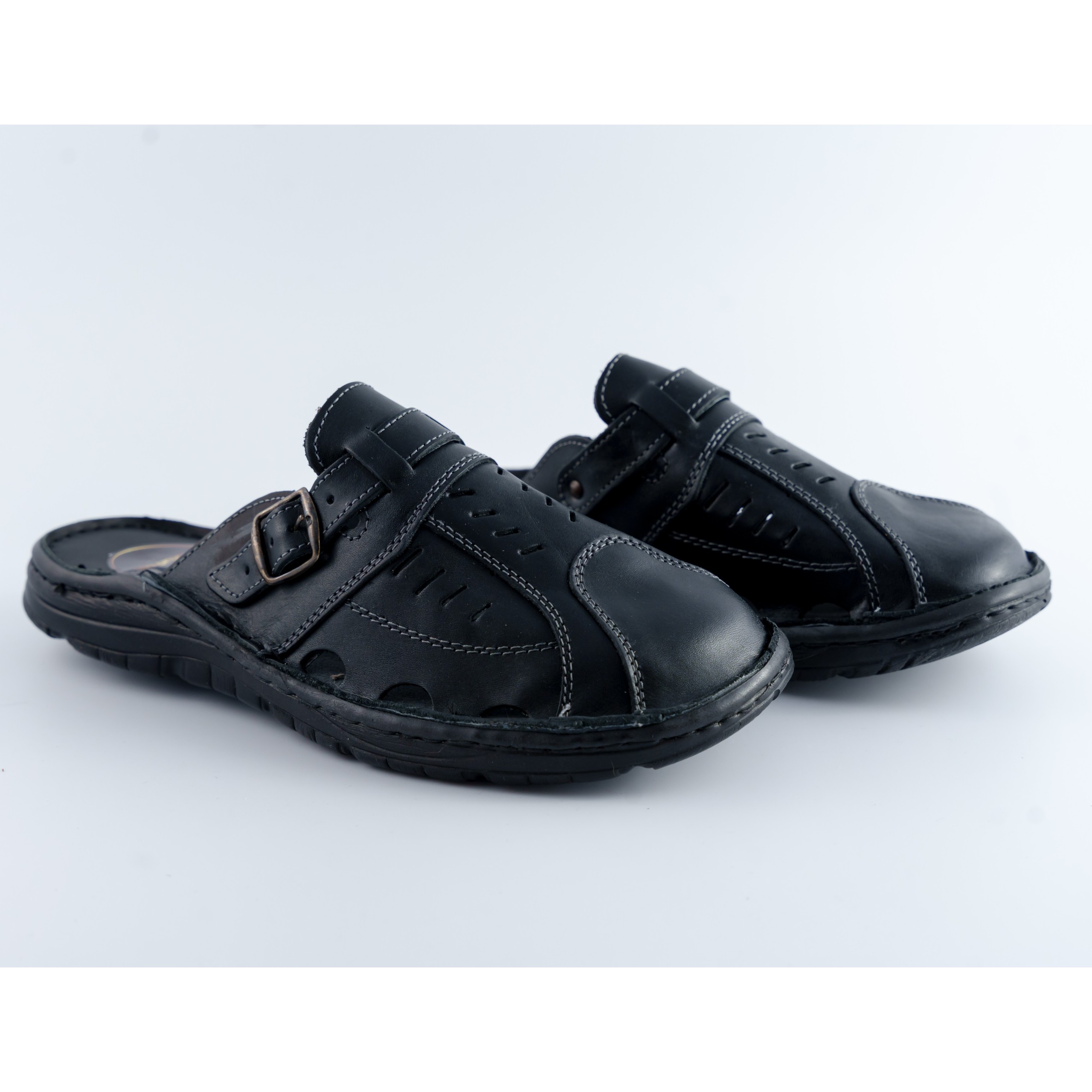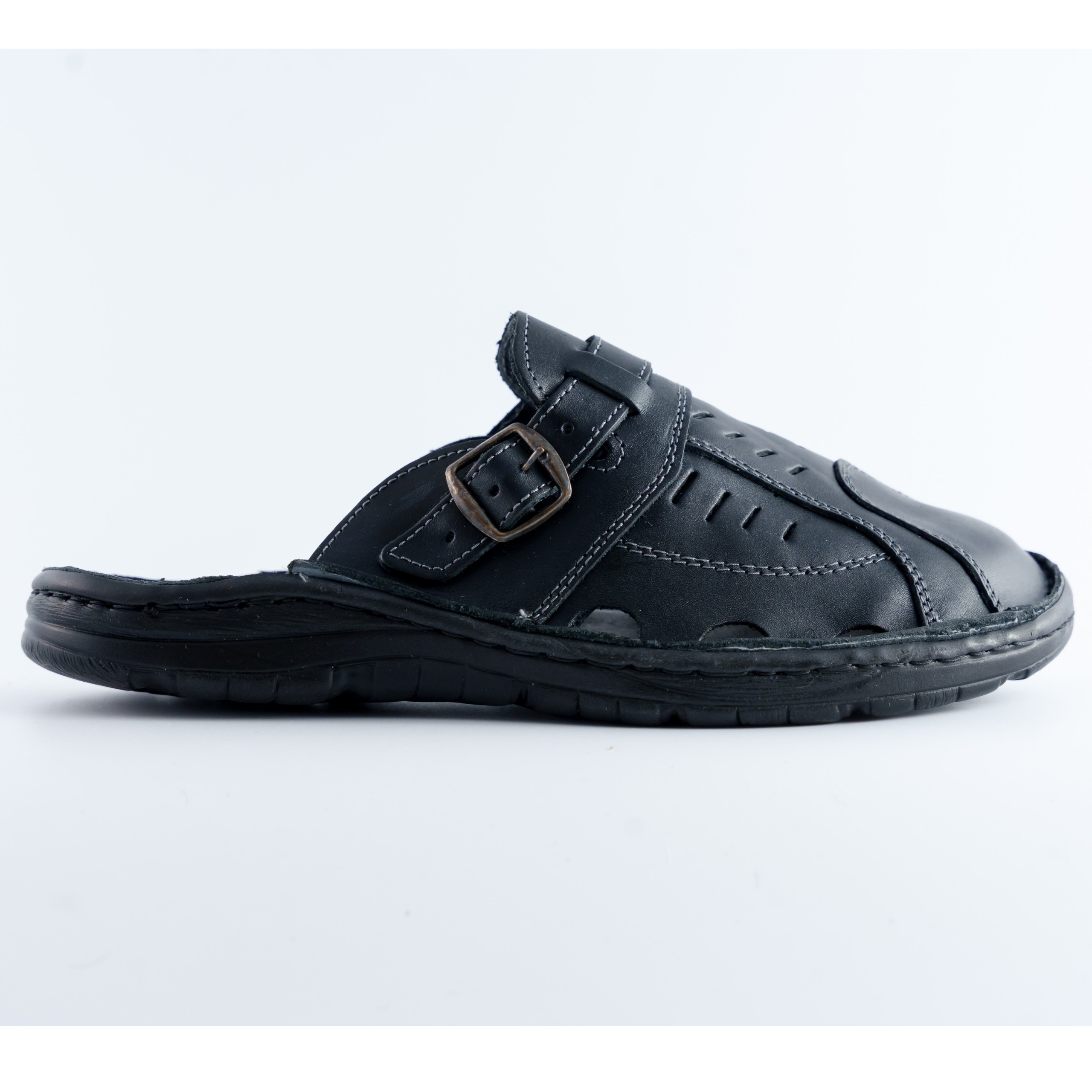 Stylowe i wygodne klapki męskie wykonane z wysokiej jakości skóry naturalnej. Klasyczny, czarny kolor oraz solidne wykonanie sprawiają, że są idealnym wyborem na codzienne użytkowanie, zarówno w domu, jak i na zewnątrz. Regulowane zapięcie na klamrę pozwala dopasować but do stopy, zapewniając komfort noszenia. Antypoślizgowa, elastyczna podeszwa zapewnia stabilność i bezpieczeństwo na różnych nawierzchniach. Idealne połączenie elegancji i funkcjonalności dla każdego mężczyzny ceniącego wygodę i trwałość.
