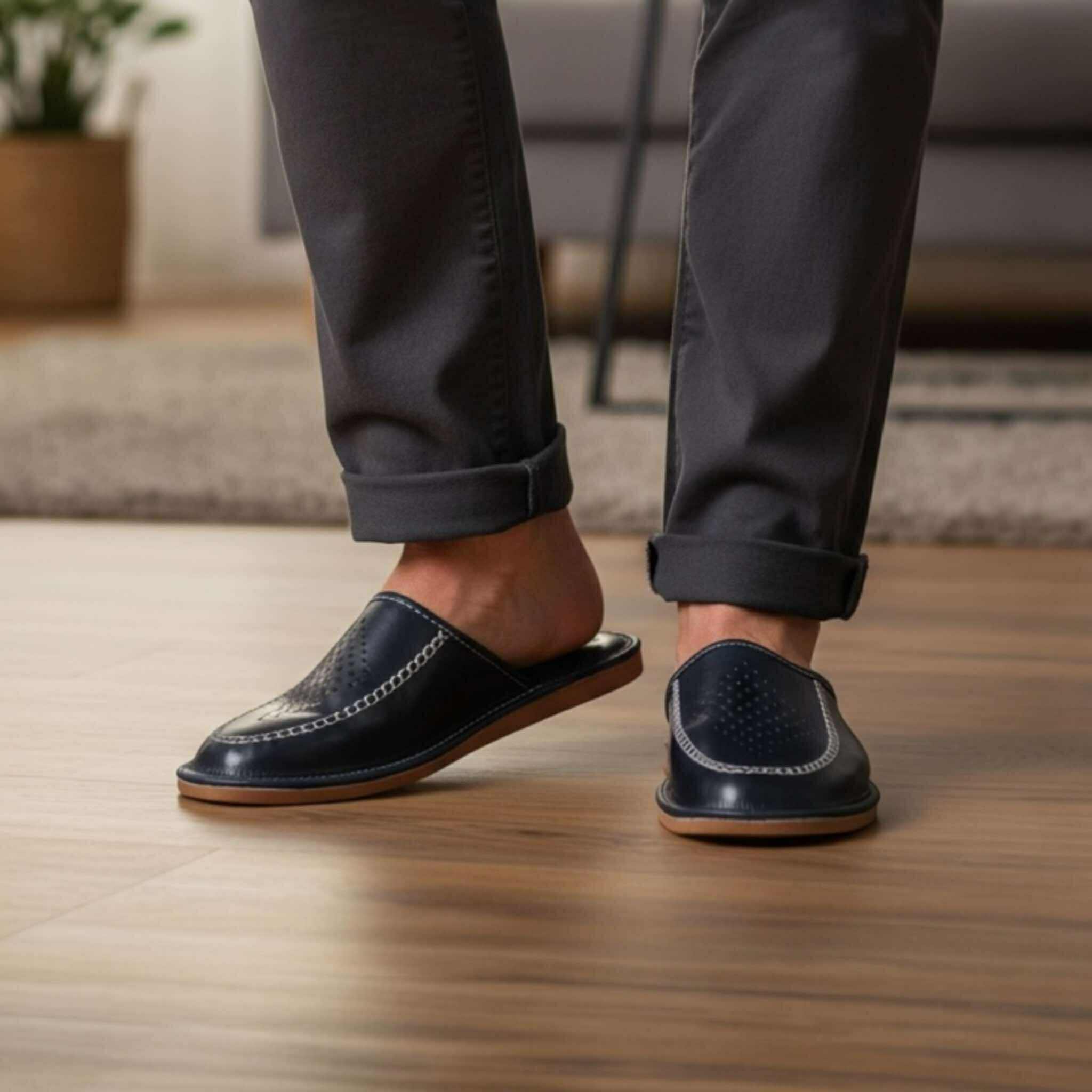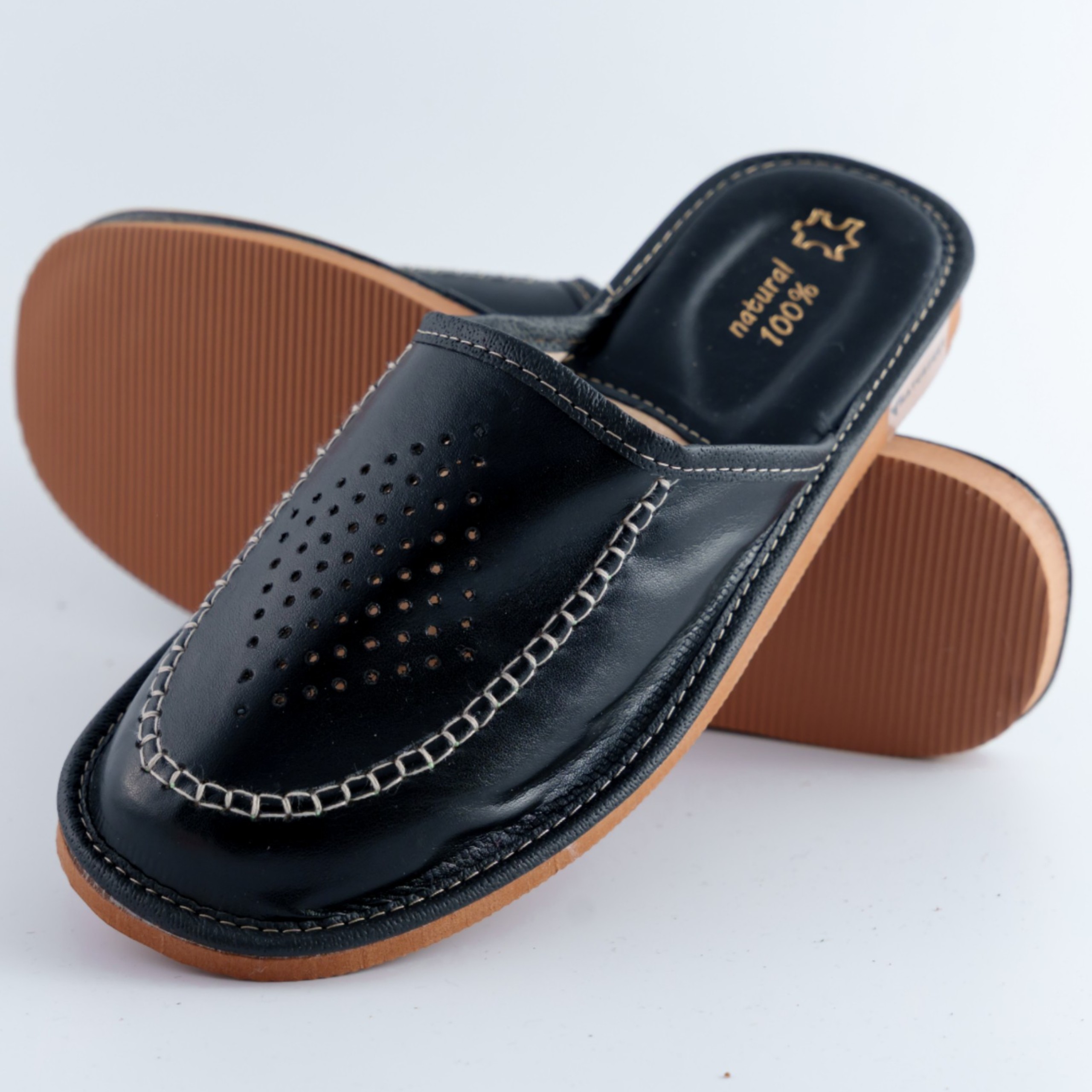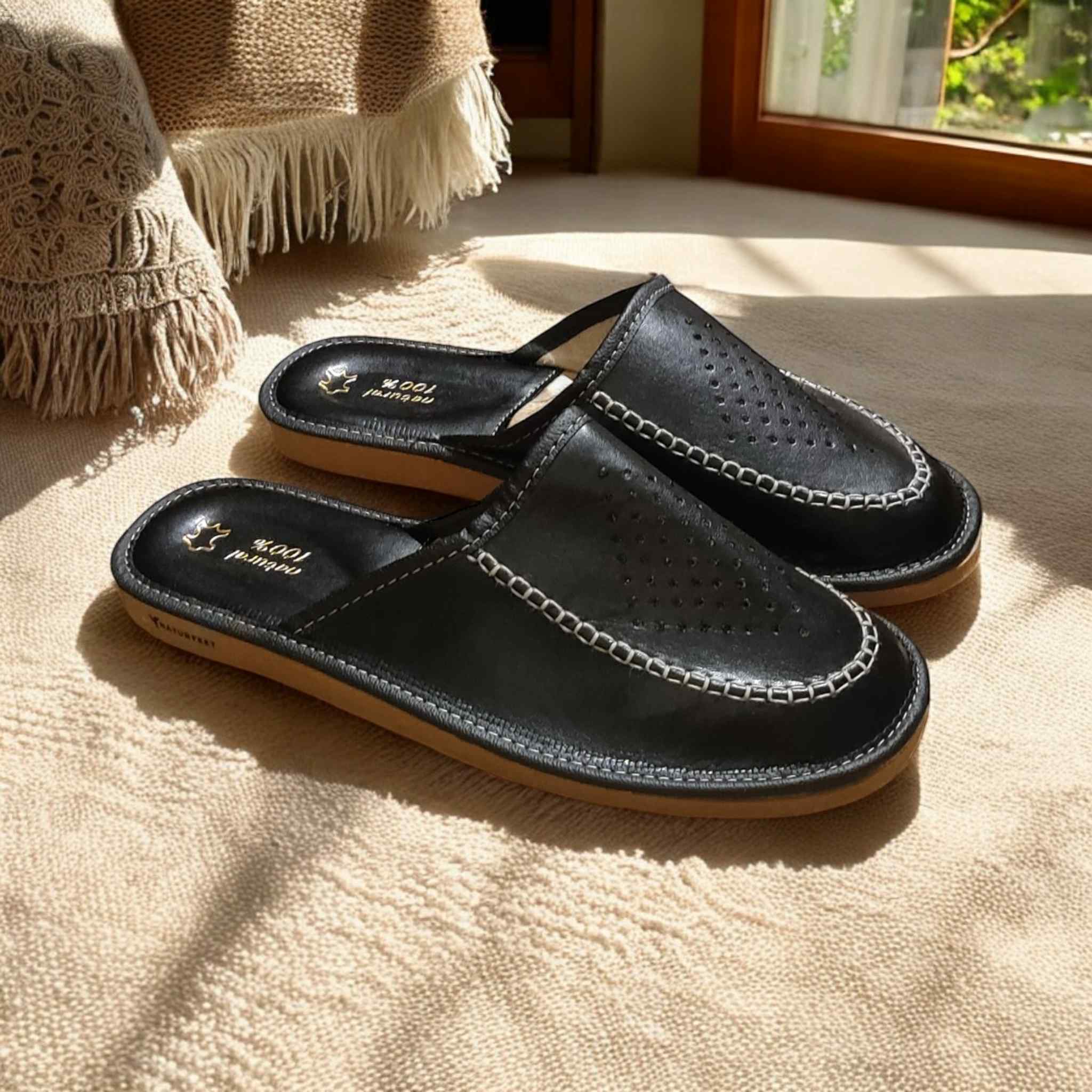 Miękka wkładka i wnętrze ze skóry naturalnej gwarantują wysoki komfort noszenia, a lekka podeszwa z pianki EVA dobrze amortyzuje i zapewnia cichą pracę na podłożu. Doskonałe zarówno do użytku domowego, jak i do biura czy hotelu.