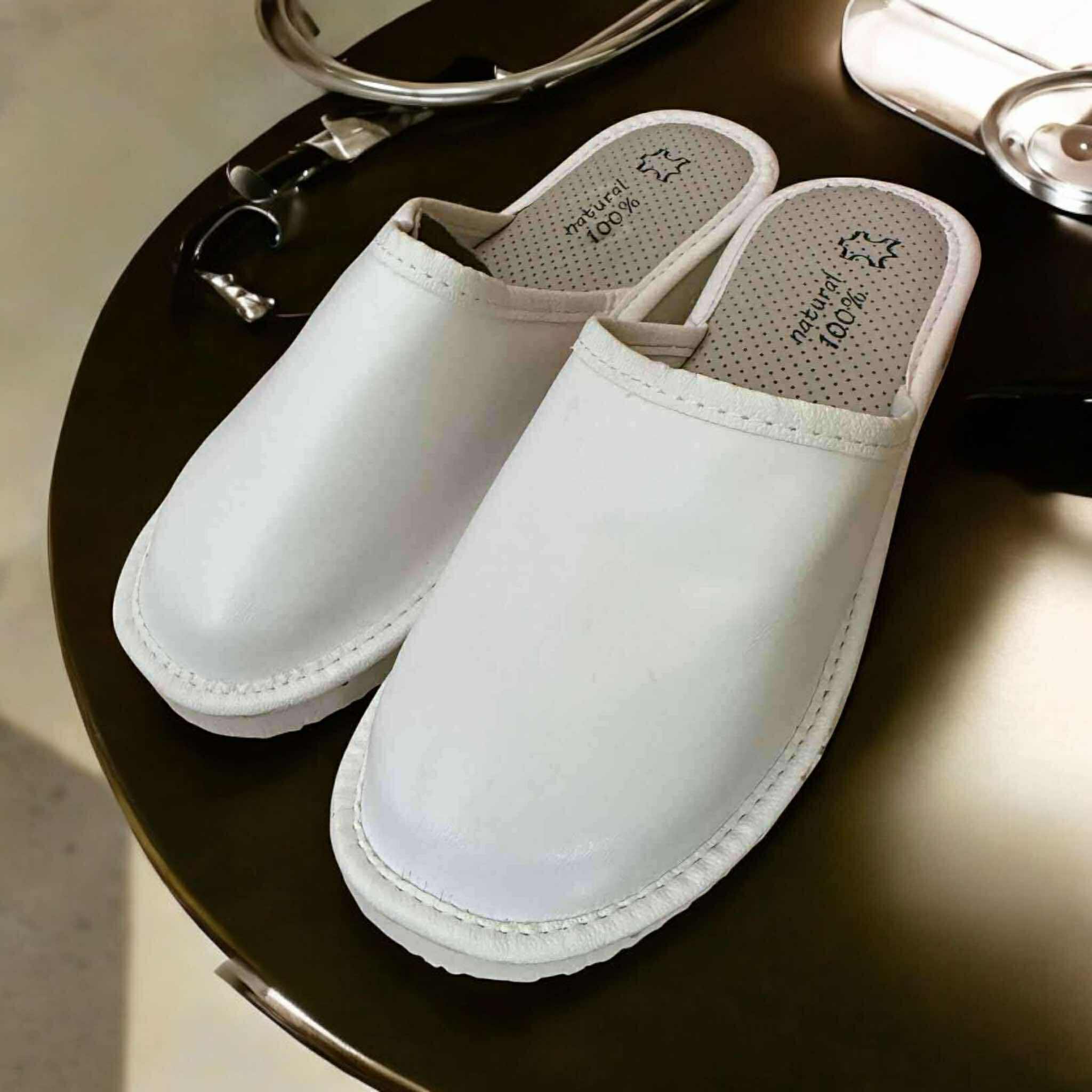 Miękka skórzana wkładka oraz wnętrze gwarantują komfort noszenia nawet przez wiele godzin, a podeszwa z pianki EVA Premium doskonale amortyzuje kroki i jest odporna na ścieranie. Model świetnie sprawdzi się w środowiskach medycznych, gabinetach kosmetycznych czy jako wygodne obuwie domowe.