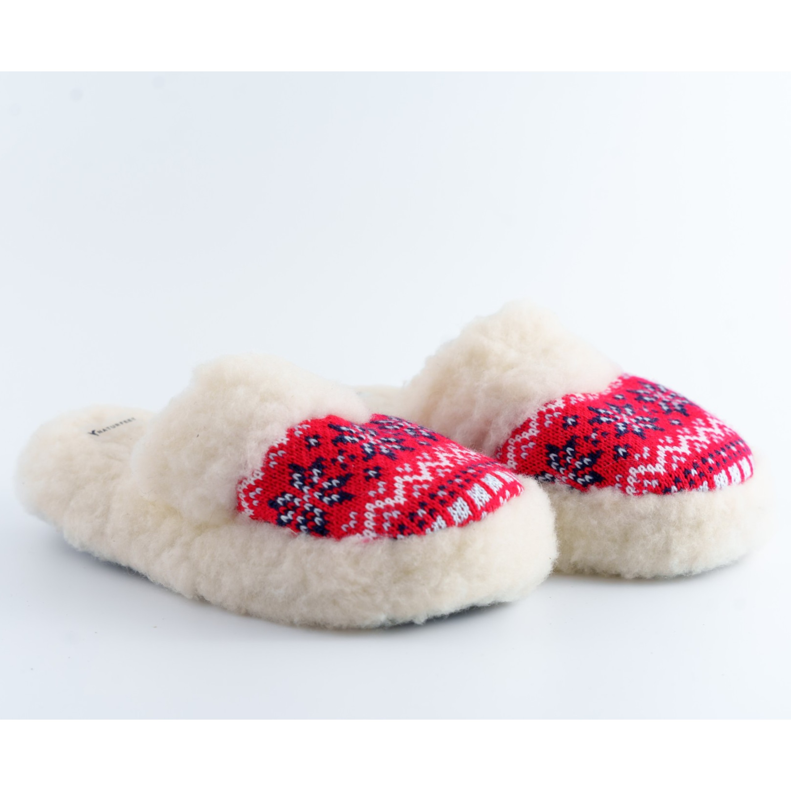 Antypoślizgowa gumowa podeszwa gwarantuje stabilność i bezpieczeństwo na każdej powierzchni, a klasyczny, zimowy wzór dodaje uroku i stylu.